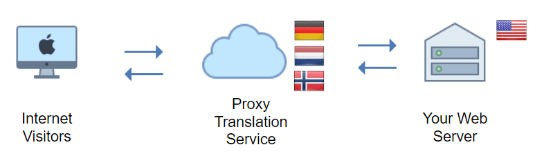 Enter a fourth option that has emerged more recently: Proxy Translation. Here, the translation company provides a fully managed service that acts as a front door to your website. The service intercepts requests and serves either translated content it provides or the untranslated content from the default language on your web site based on the visitor’s language preference or location.